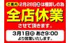 2月28日(土)全店休業のお知らせ